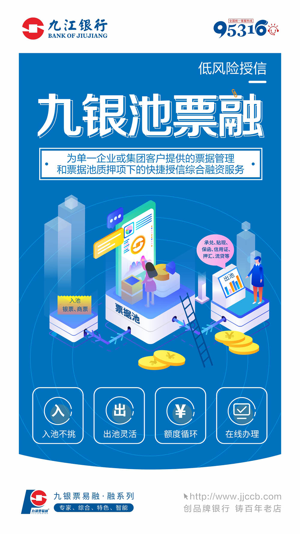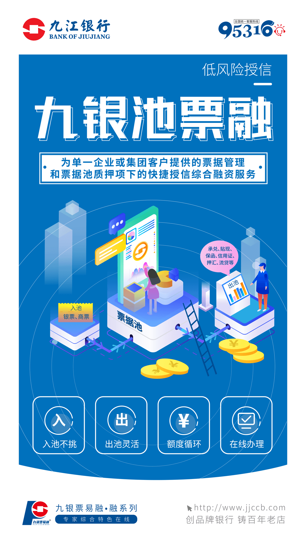 指九江銀行為單一企業(yè)或集團(tuán)客戶提供的票據(jù)管理和票據(jù)池質(zhì)押項(xiàng)下的快捷授信綜合融資服務(wù),包含票據(jù)托管、票據(jù)承兌、票據(jù)貼現(xiàn)、保函、信用證和貸款等融資服務(wù)。