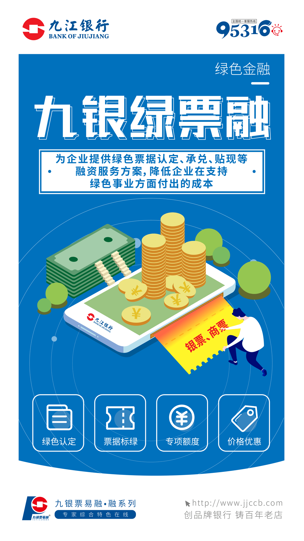 指九江銀行為企業(yè)客戶提供一攬子綠色票據(jù)認(rèn)定、綠色票據(jù)承兌及綠色票據(jù)貼現(xiàn)等融資服務(wù)方案,旨在降低企業(yè)在支持綠色事業(yè)方面付出的成本。