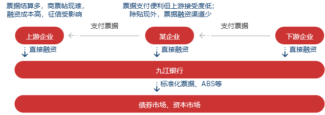 指九江銀行為企業(yè)客戶提供票據(jù)直接融資服務(wù),即提供企業(yè)應(yīng)收賬款票據(jù)化,票據(jù)標(biāo)準(zhǔn)化服務(wù)。將企業(yè)持有的票據(jù)打包為標(biāo)準(zhǔn)化票據(jù)或ABS等,在金融市場(chǎng)進(jìn)行直接融資,旨在幫助企業(yè)獲得更便利和低成本的直接融資渠道。