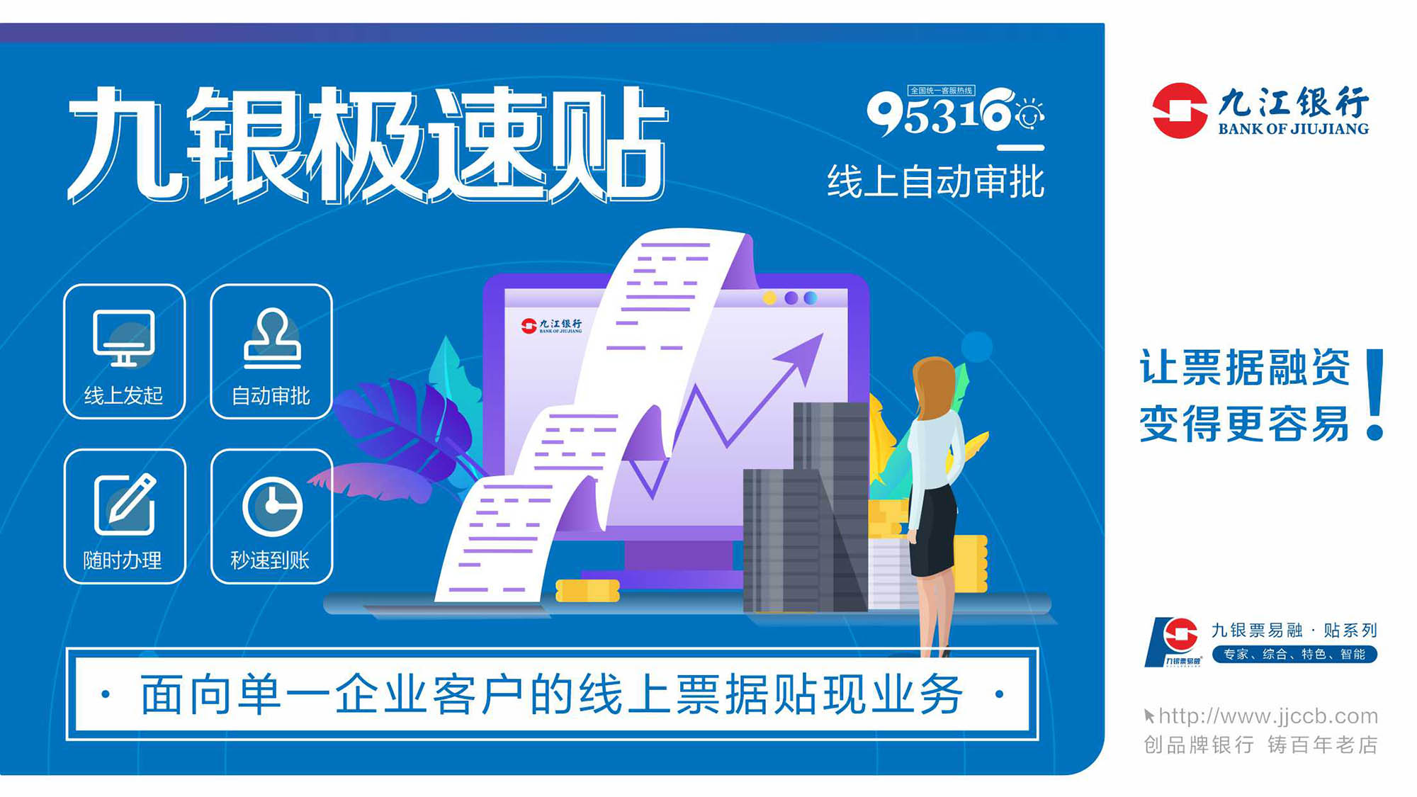 指九江銀行面向單一企業(yè)客戶的線上票據(jù)貼現(xiàn)業(yè)務(wù)。九江銀行為符合要求的企業(yè)客戶提供在線電子商業(yè)匯票貼現(xiàn)業(yè)務(wù),通過系統(tǒng)核驗(yàn)控制替代人工操作的方式,實(shí)現(xiàn)電子商業(yè)匯票貼現(xiàn)全流程自動(dòng)化處理。