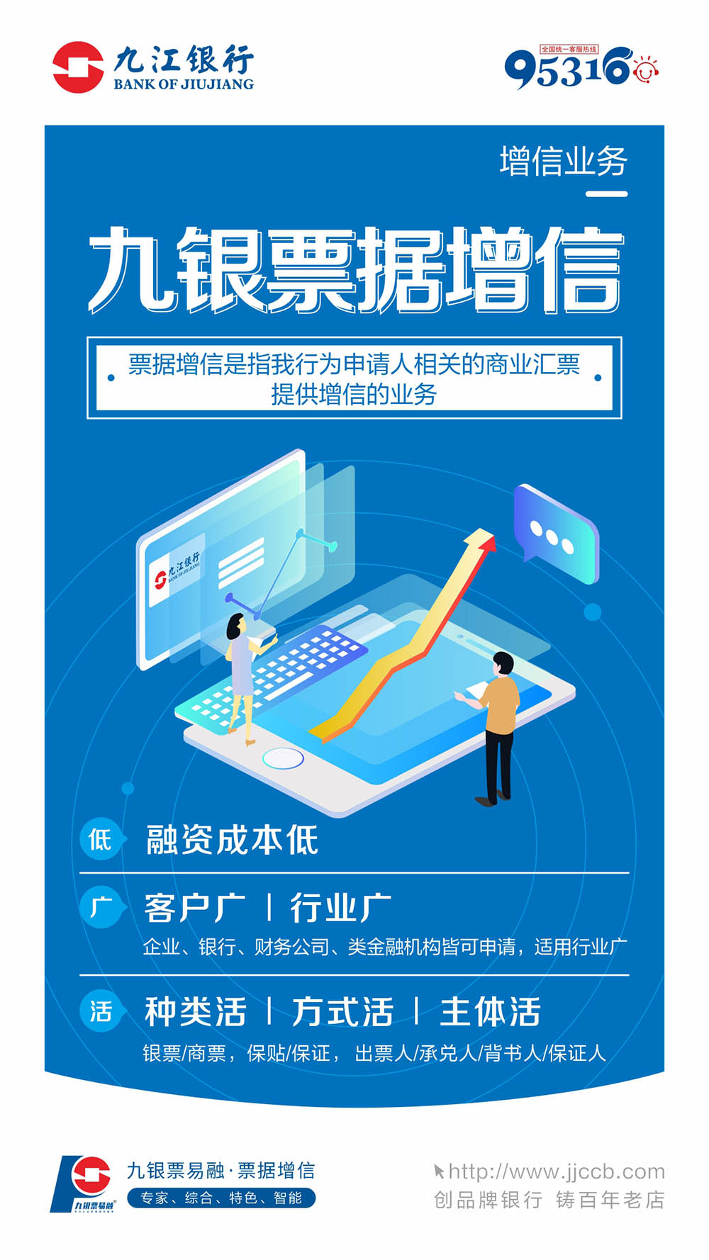 指九江銀行為授信申請(qǐng)人相關(guān)的商業(yè)匯票提供增信的業(yè)務(wù),包括商業(yè)匯票保貼增信和商業(yè)匯票保證增信。