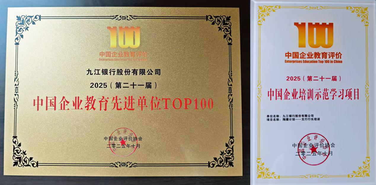 近日,由中國(guó)企業(yè)評(píng)價(jià)協(xié)會(huì)主辦的“第二十一屆中國(guó)企業(yè)教育評(píng)價(jià)活動(dòng)”圓滿落幕。九江銀行憑借在培訓(xùn)體系構(gòu)建、教育方式創(chuàng)新、精品課程研發(fā)上的亮眼表現(xiàn),成功斬獲兩大獎(jiǎng)項(xiàng),培訓(xùn)品牌知名度與影響力進(jìn)一步提升。