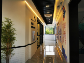 ?。ǘ┤肟谡故荆航?jīng)過(guò)文化走廊區(qū)穿過(guò)玻璃門進(jìn)入基地,正前方為專家講座區(qū),左邊為金融消保區(qū),可向左轉(zhuǎn)開(kāi)始基地參觀、學(xué)習(xí)。